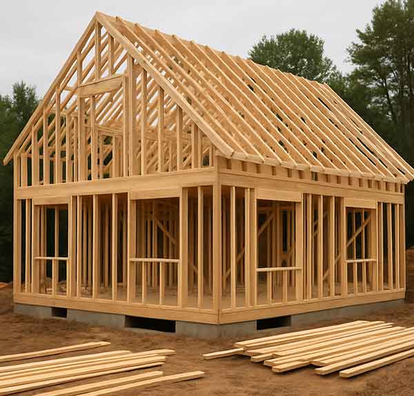 - Lumber for framing (walls, floors, roof)